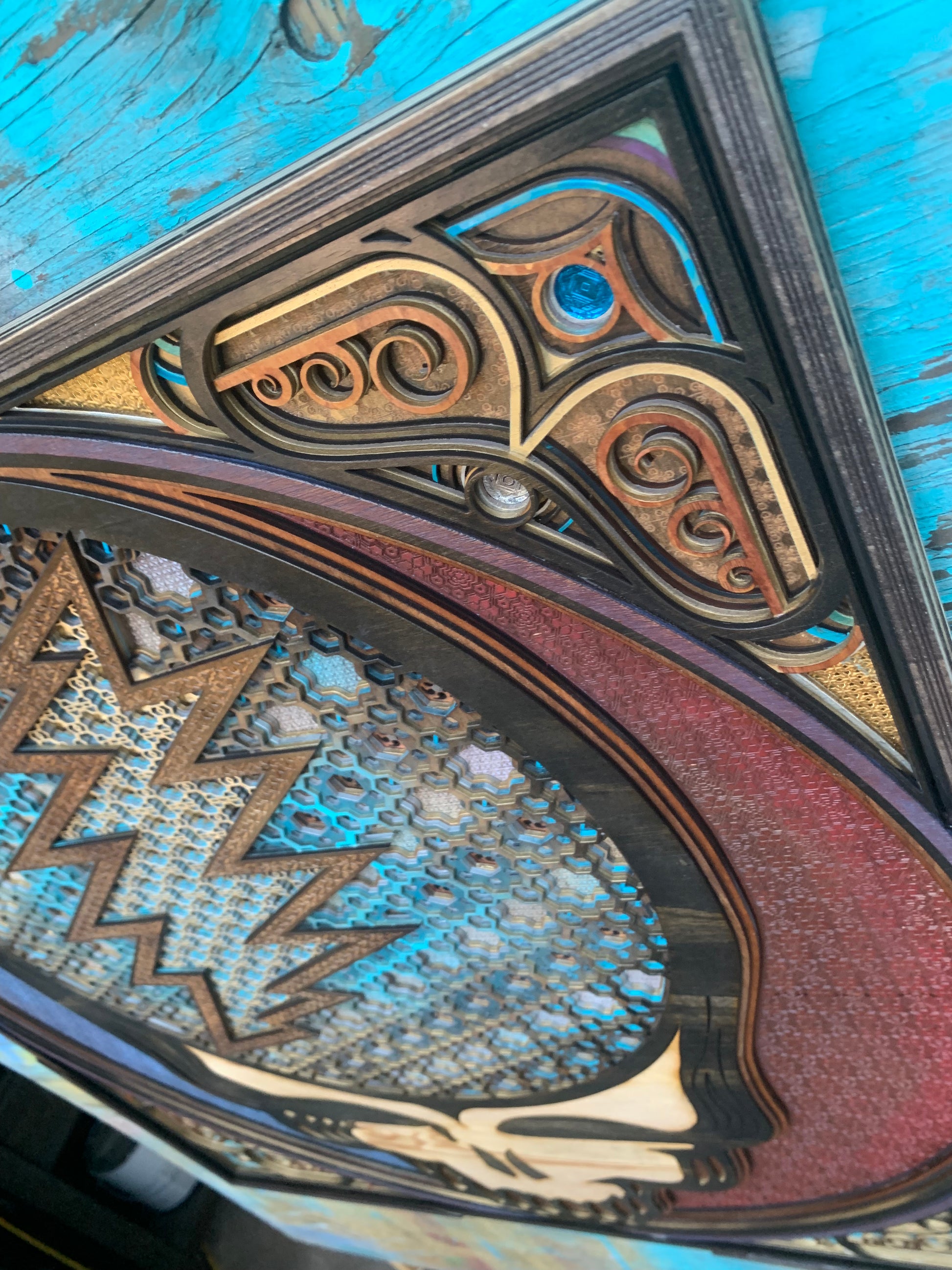 Limited edition Steal your face mandala, designed, cut, and assembled by Thomas Walker and Third Eye Up Designs in Truckee, California.